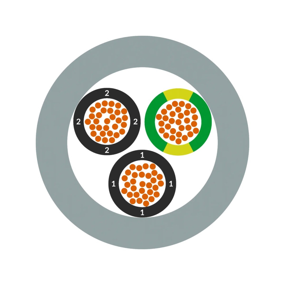 動力和控制電纜; 2X0.75; U0/U: 300/500 V; HFFR; 芯線識別: 號碼; 柔性