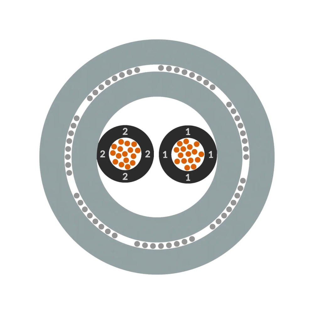 動力和控制電纜; 2X0.5; U0/U: 300/500 V; HFFR; 芯線識別: 號碼; 屏蔽; 柔性